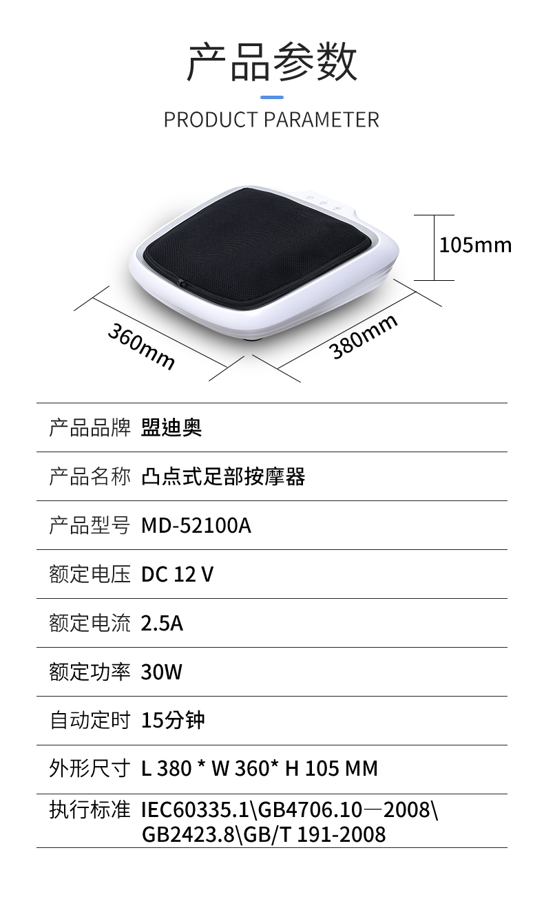 功能特征:腳底六個(gè)按摩頭,三檔力度調(diào)節(jié),按摩頭正反轉(zhuǎn),