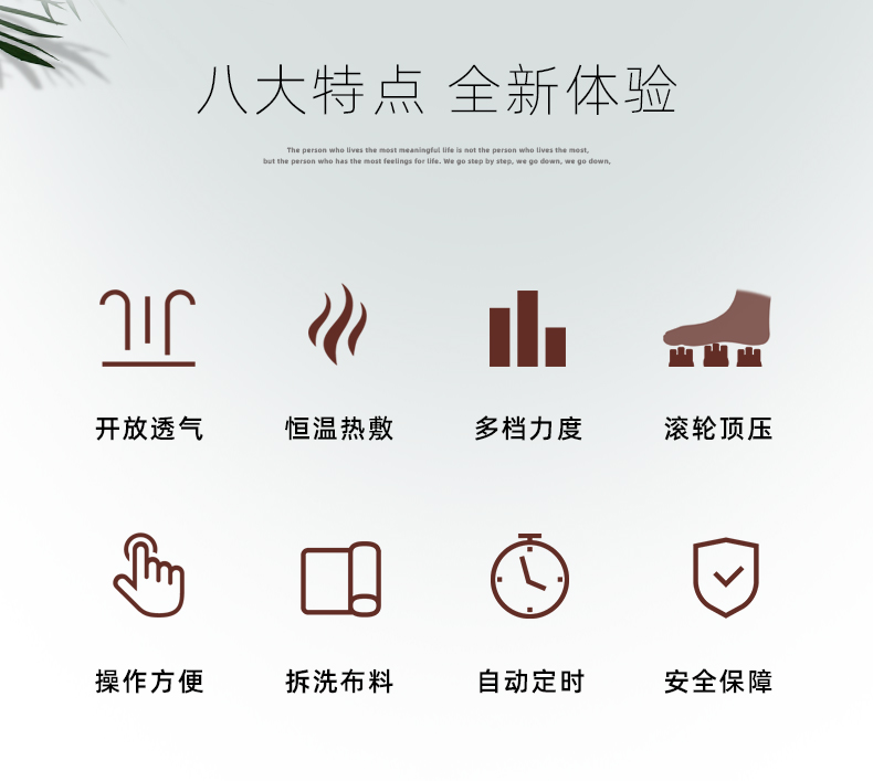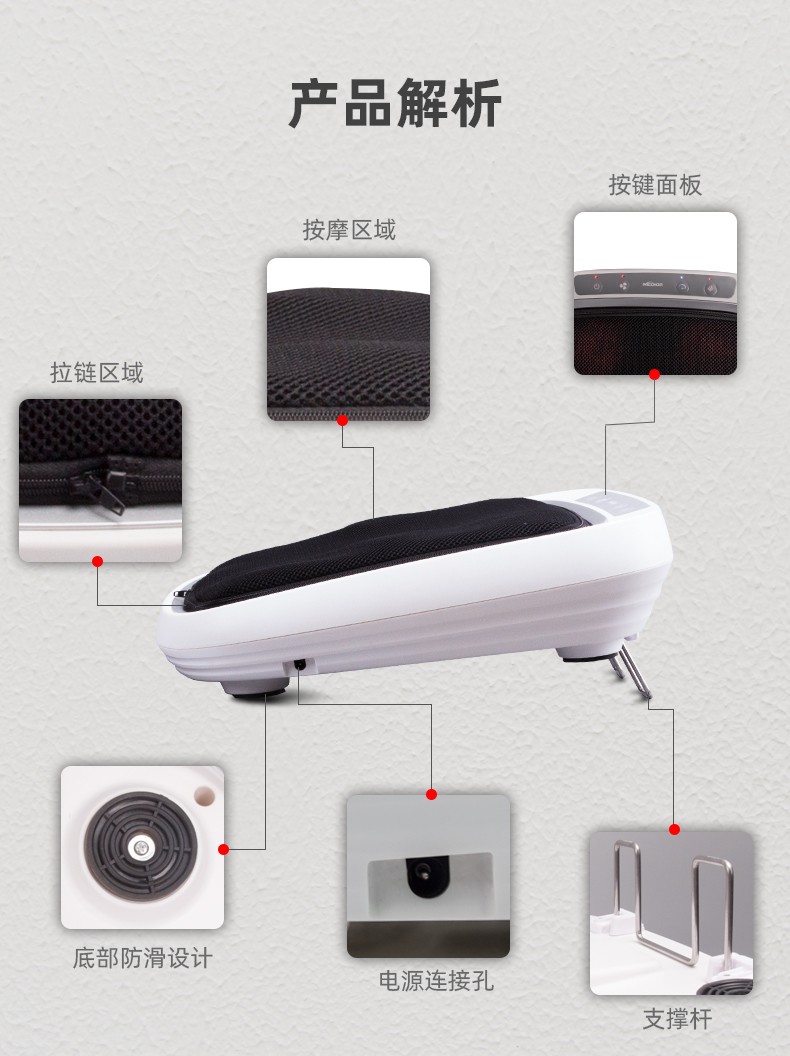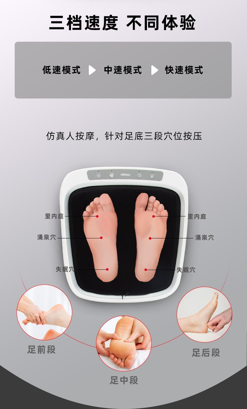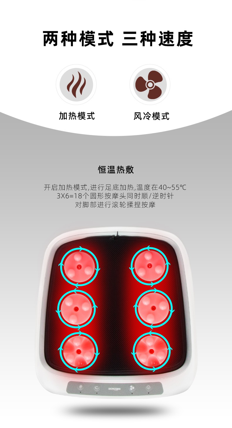 功能特征:腳底六個按摩頭,三檔力度調(diào)節(jié),