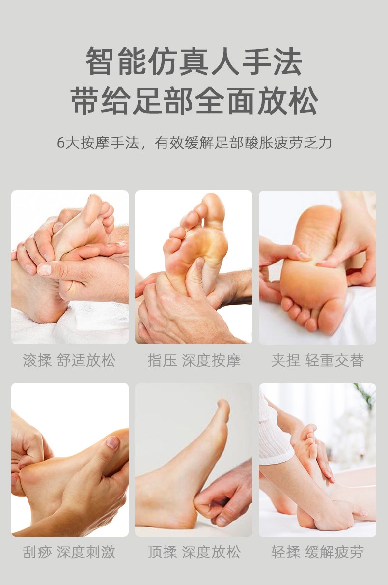 腳底 滾輪按壓(腳趾)、刮痧(腳底)、頂(腳后跟)按摩 (多模式,多強度)